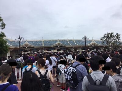 東京ディズニーランド到着。入園ゲート前で開園を待つたくさんの人たち。